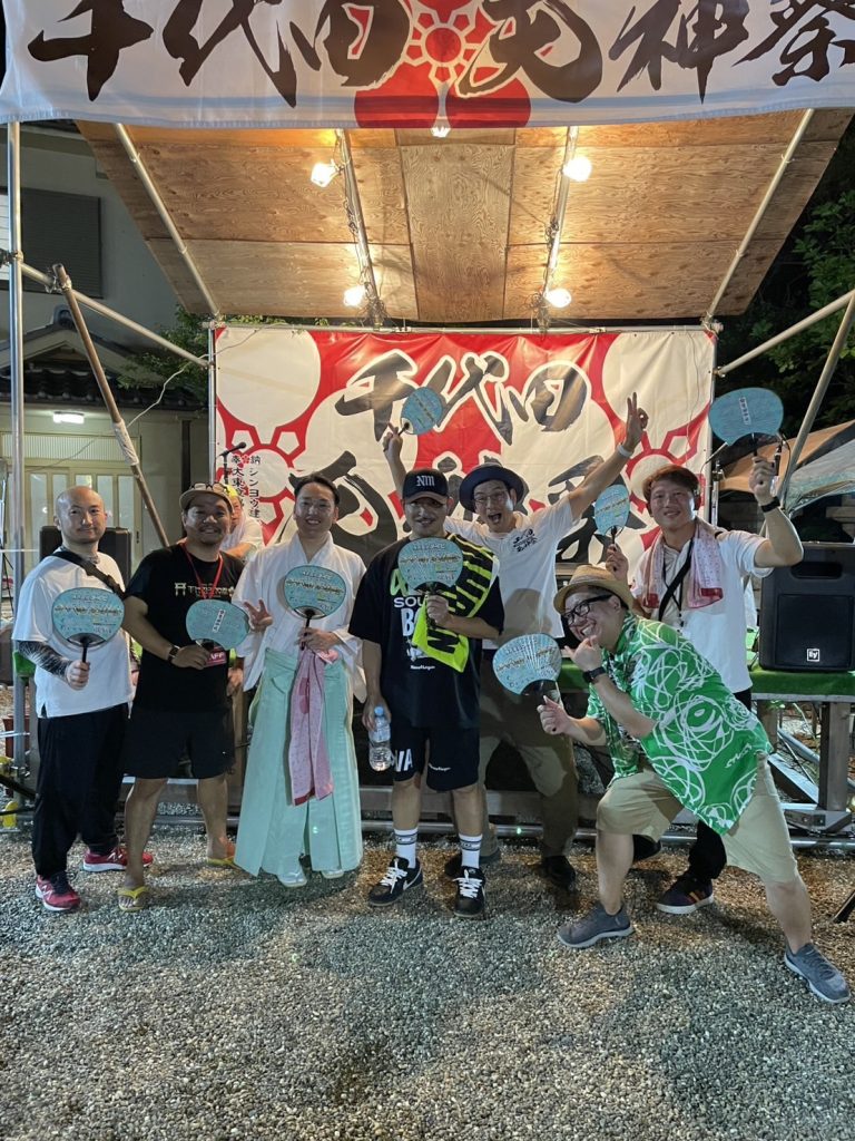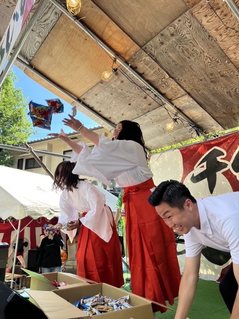 2025.0719 千代田天神祭 2025年7月21日 最終更新日時 : 2026年1月13日 サン・リード 今年も準備からお手伝いさせていただきました。 巫女になり、井上がステージからお菓子撒きをしました。 浦は学生時代によく聴いたMEGARYUのMEGAHORNさんが来られてDey by Deyを聴いて感動しました!
